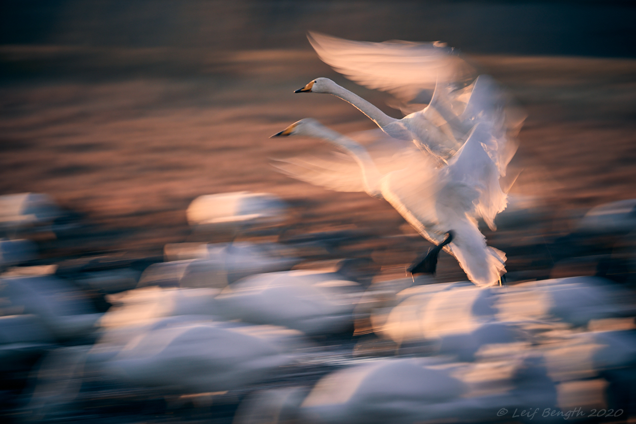 Ett par sångsvanar som dansar fram i en svantango över den stora publiken, om ca 3200 huvuden vid Tysslingen, igår kväll vid solnedgång. Härlig uppvisning!