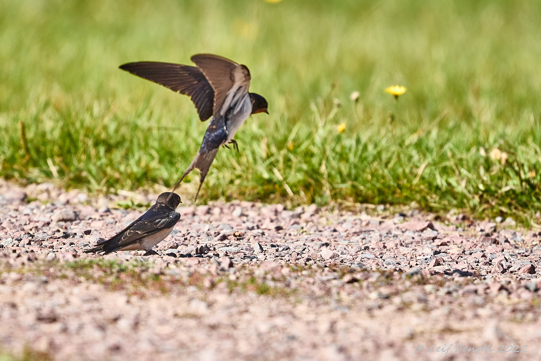 Två ladusvalor, uppriktigt sagt so vet jag inte om benämningen är dialekt eller inte. Hur som helst så uppträdde dessa två svalor gladeligen för mig når jag satt i min campingstol och hade det skönt..