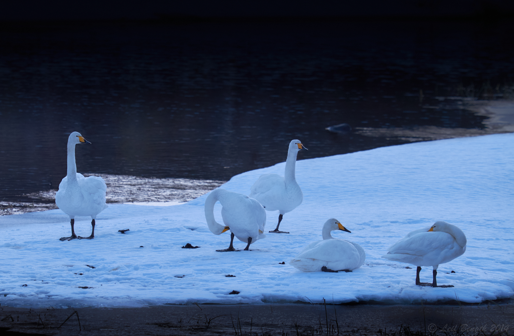När det är svinkallt ute är det skönt att sitta inomhus i värmen, lyssna till spraket från vedspisen och rota runt på hårddiskarna efter gamla oframkallade bilder som aldrig visats tidigare. Här en sådan bild på en familj sångsvanar som jag fotograferade då dom vilade på ett isflak i Dalälven vid Gysinge i januari 2014 – för 10 år sen alltså…