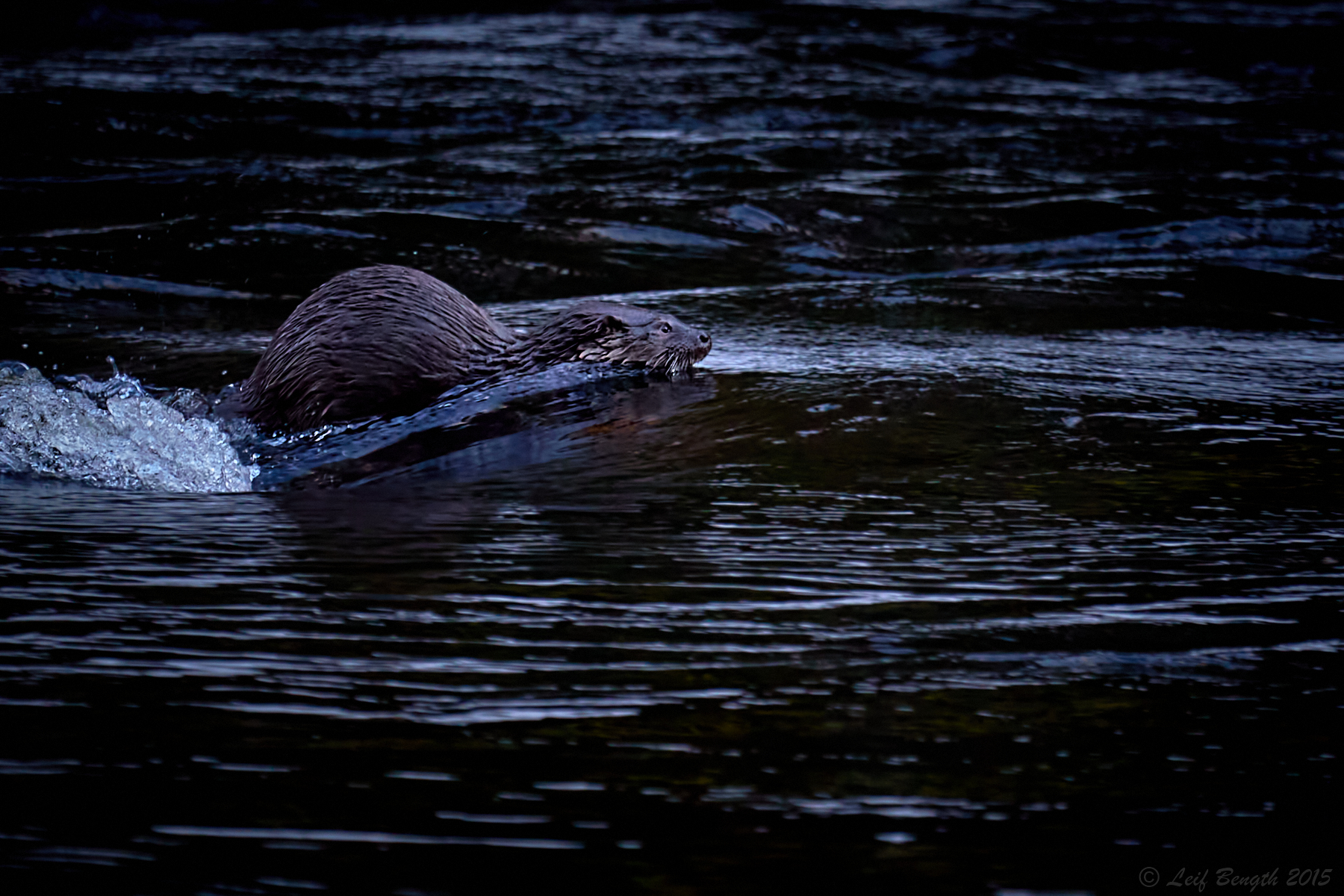 I slutet av januari 2015 låg denna utter länge och vilade i dagens sista ljus på en sten i Dalälven strömmande vatten vid Sevedskvarn strax utanför Gysinge.