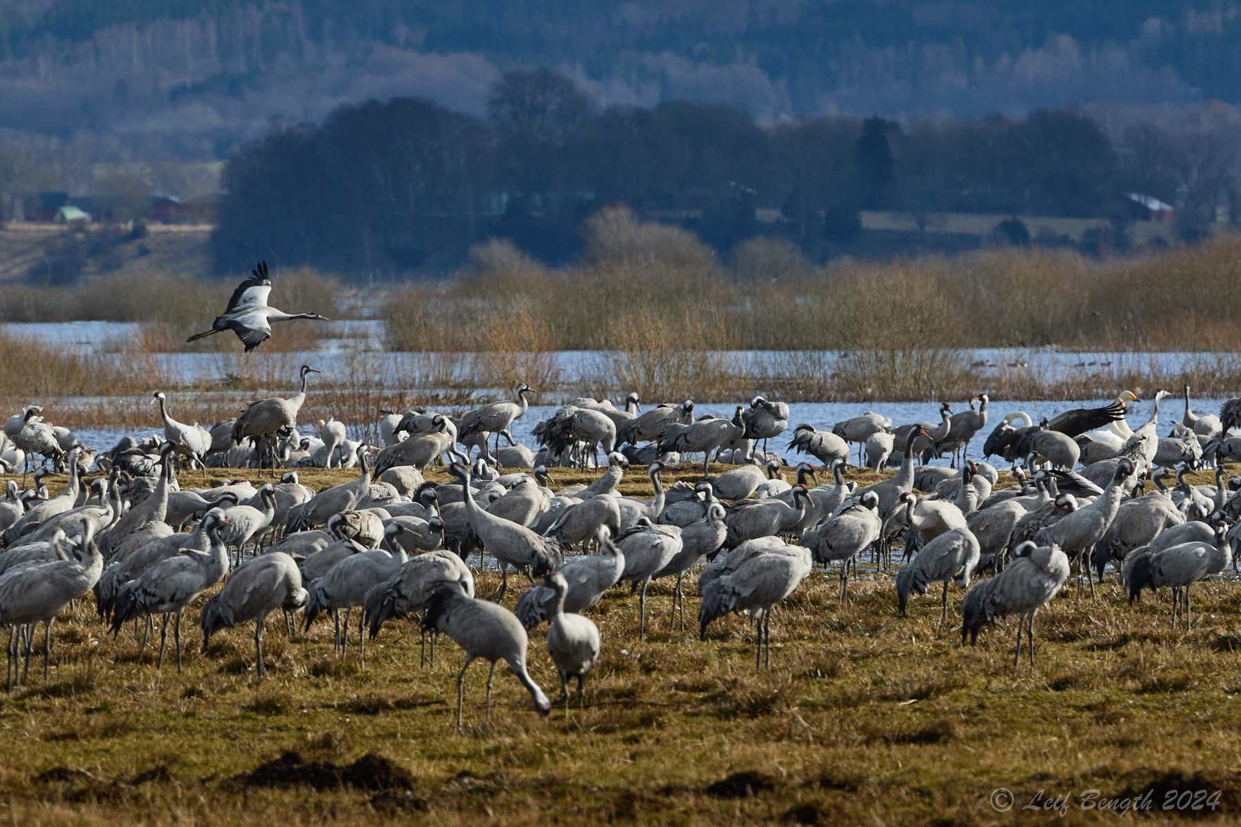 Nu har Trandansen börjat! Ett tusental tranor vid Trandansen idag efter utspridning av mat under kvällen igår. Det blev kanppt två hundra bilder idag på förmiddagen att leka med vid tillfälle. Här en av dom…