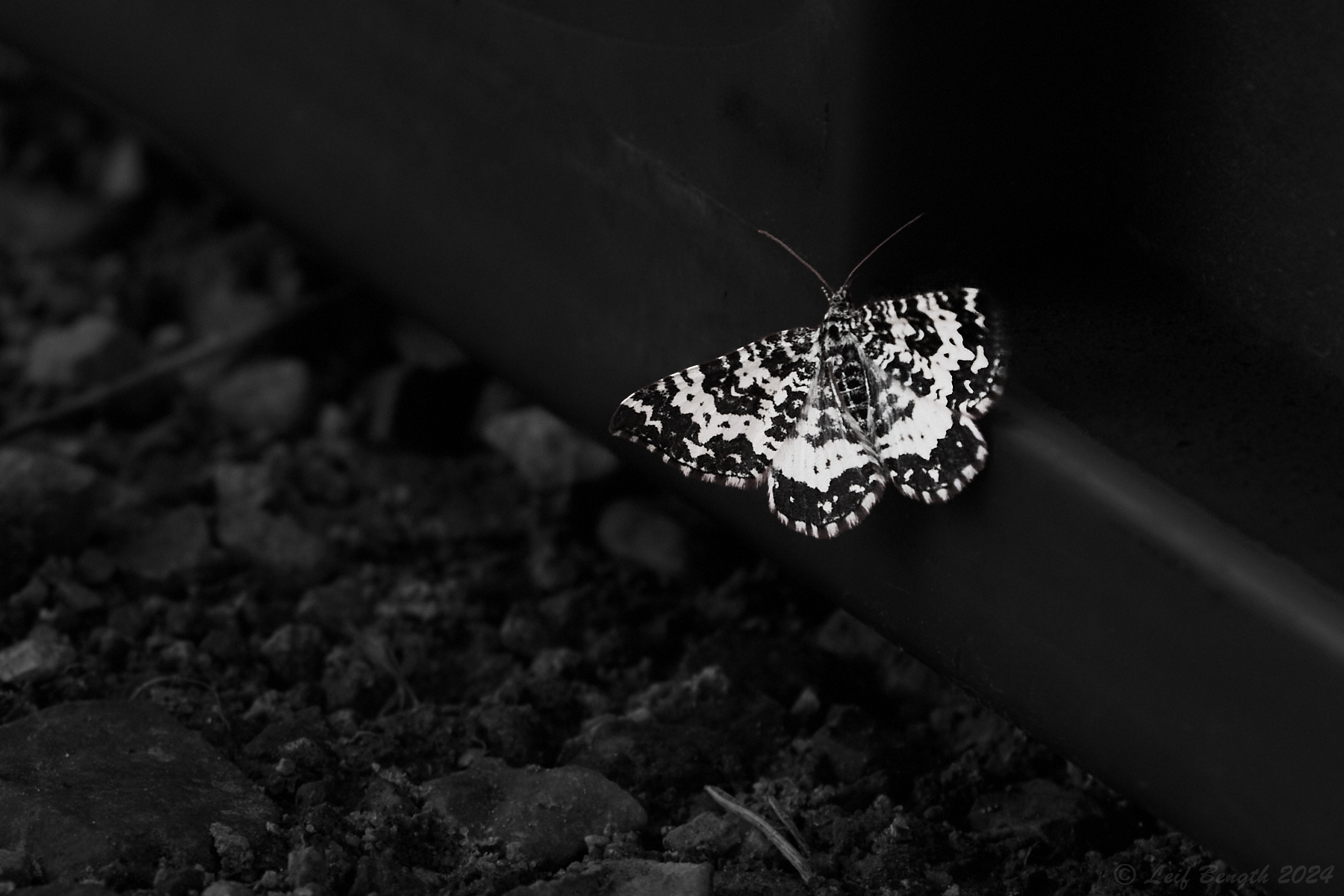 Uppe vid Geddtjenn senast fanns det gott om dessa svartvita små fjärilar. Efter lite sökande på nätet så verkar det vara en dagflygande nattfjäril på bilden och troligtvis kallas arten Dyster fältmätare…