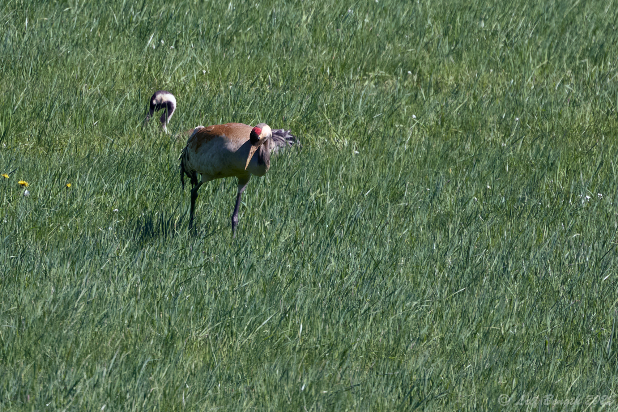 Det blev en långtur med e-hojen idag upp till Nybron via Indor och Våmhusstopet. Tillbaka sen via Heden och Kanonvägen i skön medvind. Norr på Heden hittade jag dessa två tranor som tog det väldigt lugnt i den värmande solen…