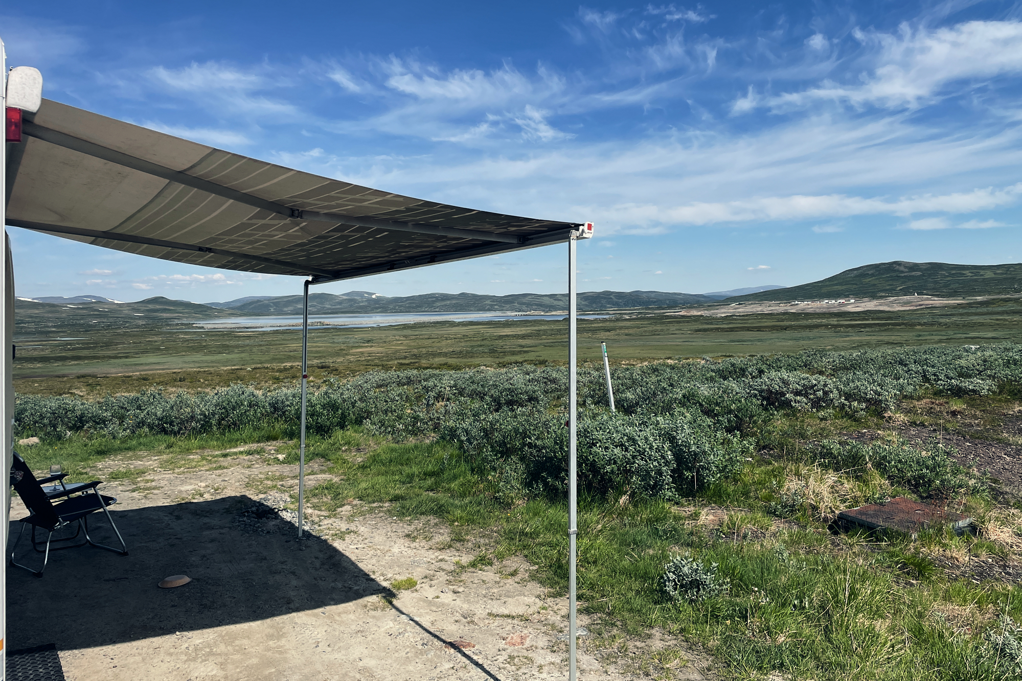 Efter en natt vid Rötviken fortsatte färden via Norge och Gäddede till Stekenjokk för ett par dygn med lite svalare nätter men med fortsatta +30C på dagarna, även på fjället…