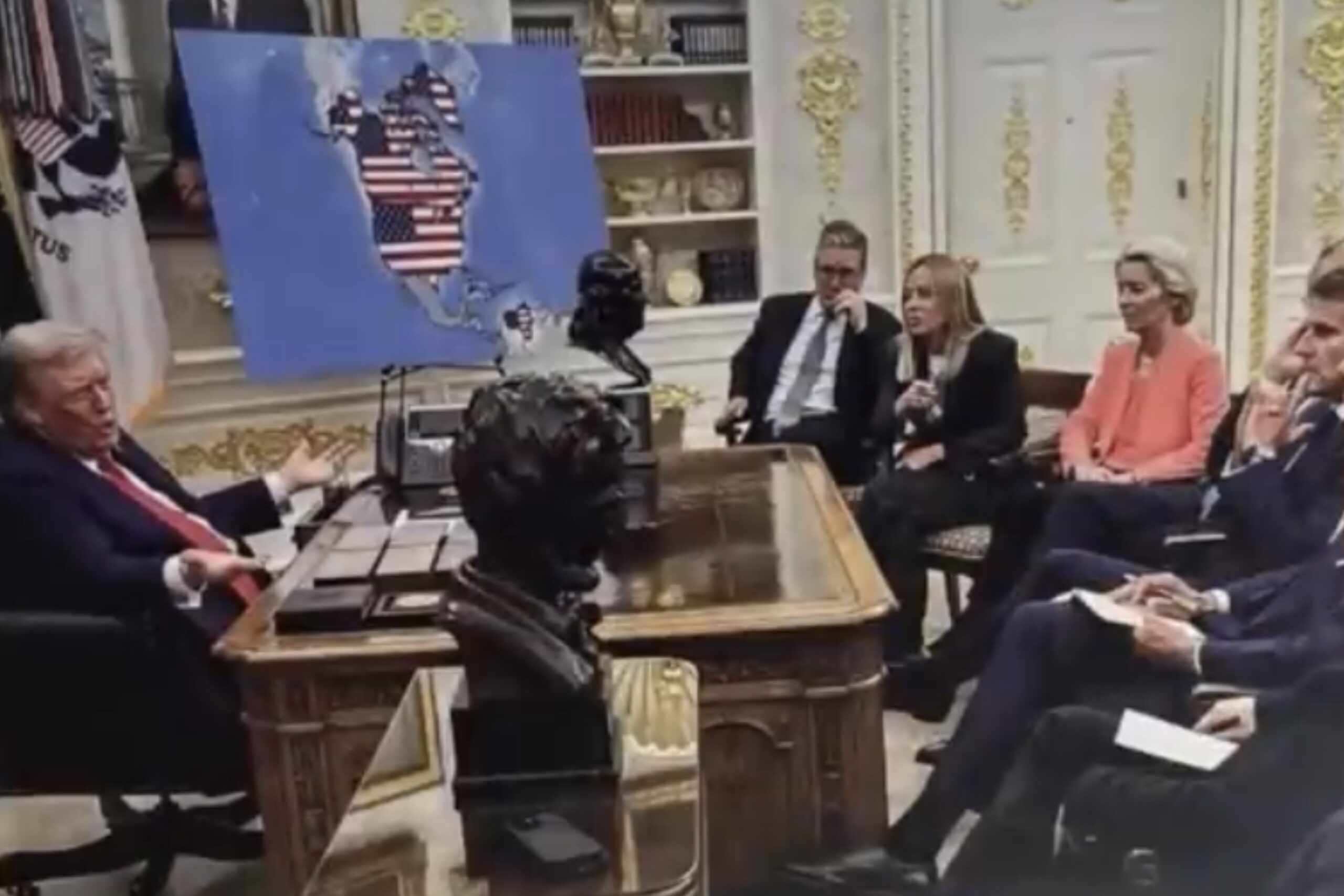 …och sen Kanada. Lika häpnadsväckande som väntat, när det gäller trumpen, att se kartan över Nordamerika där både Grönland och Kanada ligger under den amerikanska flaggan, se skärmdumpen nedan..